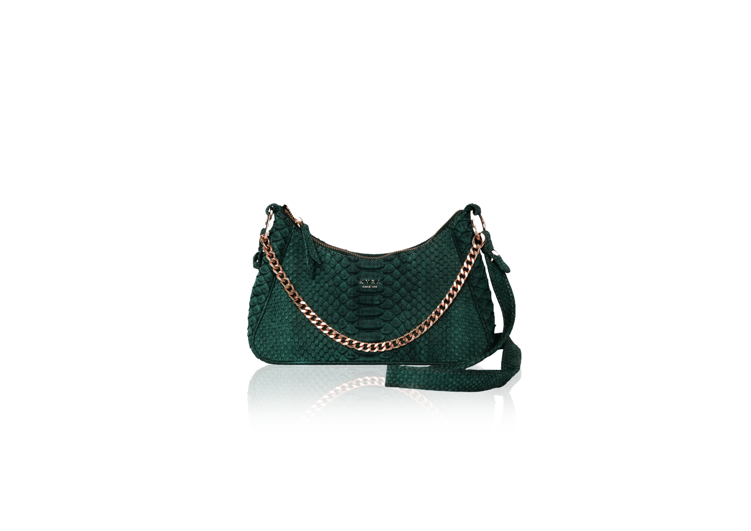 KYRA’s IVY bag has rectangular trapezoid shape, with a curvy top zipper closure. Connected with signature unique Ring, giving IVY an options for a chain strap for a handbag, or unfold the leather strap, to use it as a shoulder bag. Adjust the strap to the length you desire to make it as a cross-body-bag.
